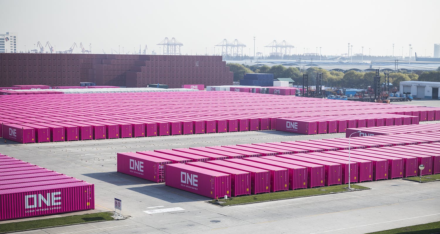 コンテナは国際標準化機構(ISO)の規格に基づいて専用の工場で作られています。鋼材のパーツを溶接しながらコンテナの形に組み立て、マゼンタ色に塗られたら、ONEのロゴも描かれます。その後、厳しい検査に合格すると、世界中で活躍する「はこ」としてデビューします。