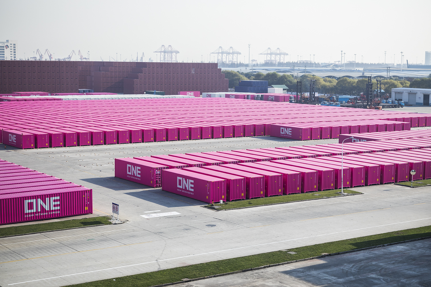 コンテナは国際標準化機構(ISO)の規格に基づいて専用の工場で作られています。鋼材のパーツを溶接しながらコンテナの形に組み立て、マゼンタ色に塗られたら、ONEのロゴも描かれます。その後、厳しい検査に合格すると、世界中で活躍する「はこ」としてデビューします。